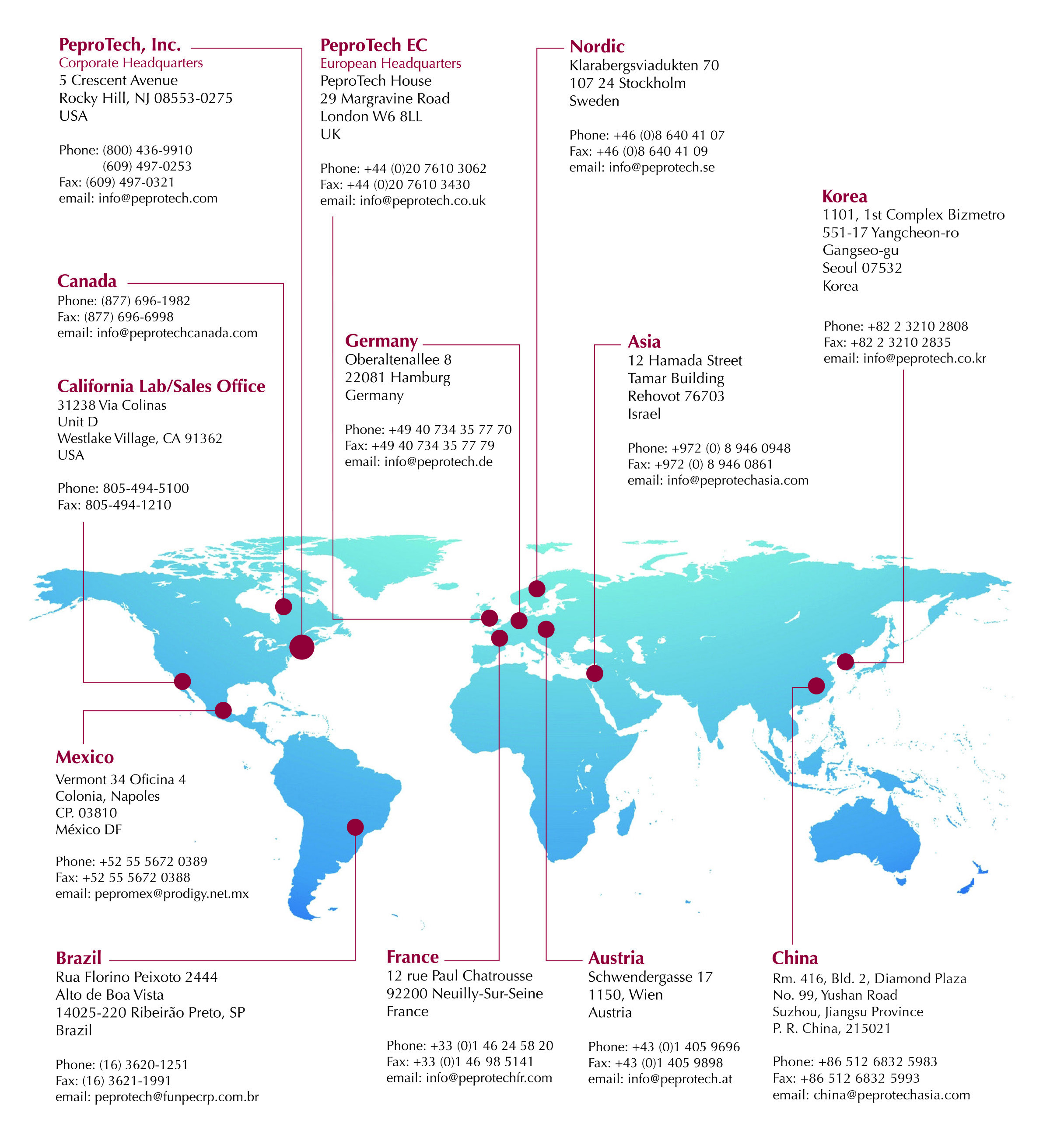 PeproTech 公司創(chuàng)立于1988年,總部位于美國新澤西州。 PeproTech 公司始 終致力于為生命科學(xué)研究和細(xì)胞治療市場(chǎng)提供高品質(zhì)的細(xì)胞因子產(chǎn)品。在過 去的27年 里,PeproTech在推動(dòng)這些領(lǐng)域的發(fā)展中一直扮演著重要角色。美 國總部的先進(jìn)生產(chǎn)設(shè)施和遍布十余個(gè)國家的客戶服務(wù)網(wǎng)絡(luò),使得PeproTech 公司成為科研工作者可以信賴的合作伙伴。同時(shí),來自科研院所和工業(yè)界的 研究人員為我們產(chǎn)品線的不斷擴(kuò)充提供了寶貴的意見和創(chuàng)意源泉。PeproTech 公司運(yùn)用創(chuàng)新方法開發(fā)出 2000 余種高品質(zhì)、高穩(wěn)定性和重復(fù)性的 產(chǎn)品,包括大腸桿菌、昆蟲細(xì)胞和哺乳動(dòng)物細(xì)胞來源的重組細(xì)胞因子/蛋白 、相關(guān)單克隆/多克隆抗體、ELISA試劑盒、無血清細(xì)胞培養(yǎng)基以及其他細(xì)胞 因子相關(guān)試劑。欲了解 PeproTech 全套產(chǎn)品線、獲取產(chǎn)品詳情和參考文獻(xiàn)等,請(qǐng)?jiān)L問其官網(wǎng):www.peprotech.com。