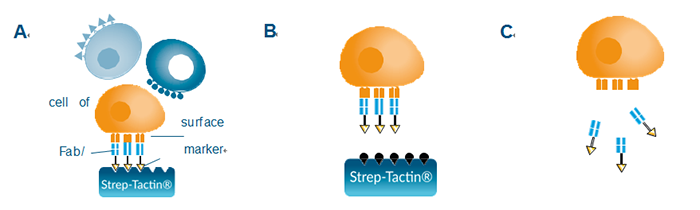 Streptamer?涵蓋了從細(xì)胞分選、細(xì)胞擴(kuò)增到細(xì)胞染色的一系列完整細(xì)胞研究產(chǎn)品線(xiàn)。事實(shí)上,Streptamer?的這種可逆機(jī)制是依賴(lài)于IBA專(zhuān)利的Strep-tag?技術(shù),從而經(jīng)過(guò)多重陽(yáng)性分選,可獲得用于后期擴(kuò)增或染色的目的細(xì)胞。