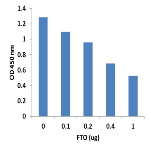添加不同濃度重組FTO酶,測(cè)定OD值。OD值與FTO酶活性成反比。