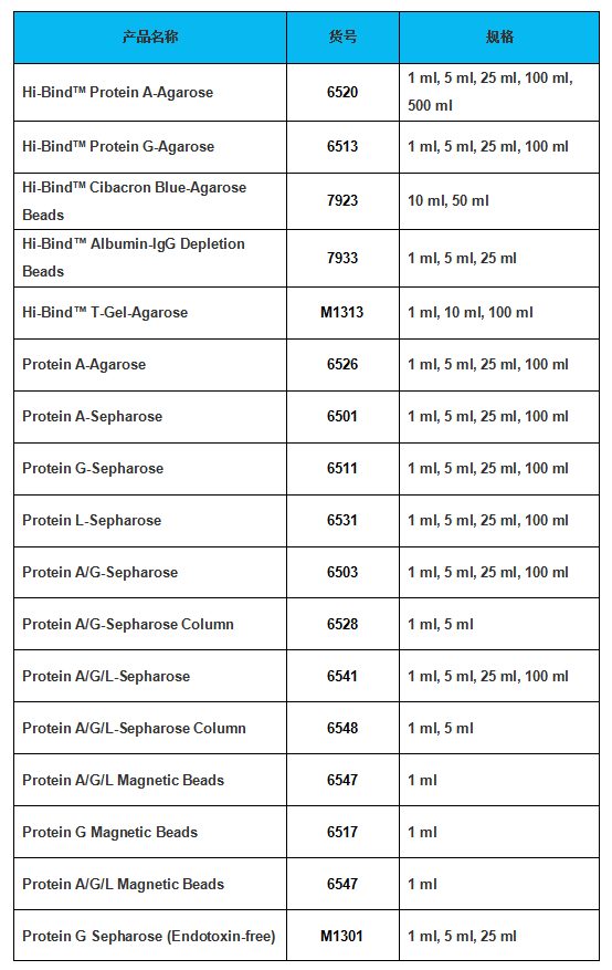 BioVision公司生產(chǎn)的 Hi-BindTM T-Gel Agarose beads 是T-gel 瓊脂糖凝膠法,具有很高的蛋白結(jié)合能力,可達(dá)30mg蛋白/ml beads。同時,可兼容多種樣本,任何類型的免疫球蛋白都可純化,如來自血清、腹水、組織或細(xì)胞培養(yǎng)液等樣本中的IgG, IgE, IgM, IgA, IgY 和Fab 片段等。