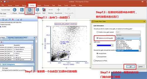 如所示的方形門不能正確的圈出細胞群,可按以下步驟將該門改變?yōu)樽杂尚伍T等。