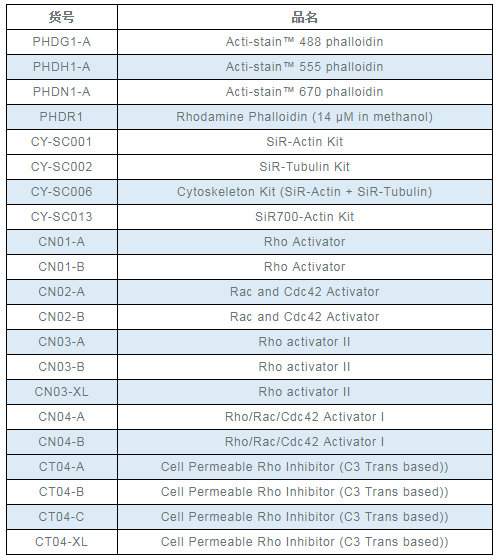由于產(chǎn)品比較有特色,研究細(xì)胞骨架總是繞不開(kāi)他們,包括F-actin、Tubulin的可視化以及信號(hào)通路中rac/cdc/rho的激活劑抑制劑等,同時(shí)促銷(xiāo)時(shí)間短暫,只到2月底(真希望這個(gè)2月有31天),
