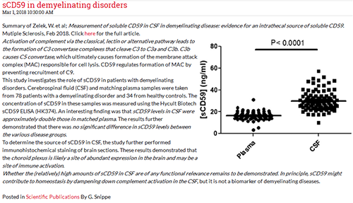 Hycult Biotech公司在天然免疫研究方面積累了豐富的經(jīng)驗,其新明星產(chǎn)品Soluble CD59 ELISA試劑盒已經(jīng)在文獻中發(fā)表,文獻結(jié)果如圖顯示: