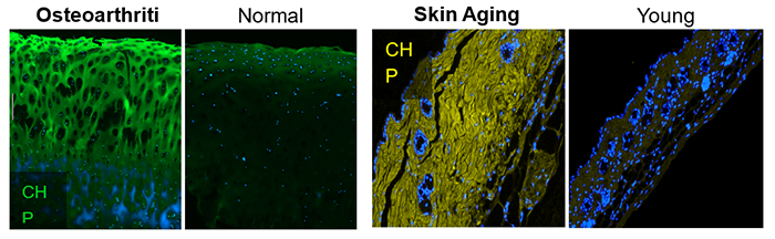 膠原蛋白是哺乳動(dòng)物體內(nèi)最為豐富的蛋白,是各種組織和器官的主要結(jié)構(gòu)組份。很多病變?nèi)绨┌Y、關(guān)節(jié)炎、纖維癥等都會(huì)表現(xiàn)出膠原蛋白的損傷及過(guò)度降解。
