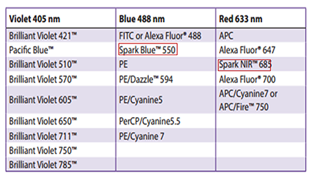 目前,流式細(xì)胞分析儀已經(jīng)從只能同時(shí)檢測(cè)幾個(gè)參數(shù)發(fā)展到可以同時(shí)檢測(cè)幾十個(gè)參數(shù),比如最新的全光譜流式細(xì)胞儀系統(tǒng)已經(jīng)可實(shí)現(xiàn)同時(shí)40色的多色分析。為了滿足大家的需求,BioLegend公司也發(fā)布了用于全光譜流式細(xì)胞儀的新熒光,包括SparkBlue?550Spark NIR?685。下面我們就一起來(lái)學(xué)習(xí)一下這兩種新熒光吧!
