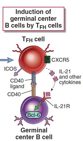 ICOS: Tfh 細(xì)胞上的 ICOS 與 B 細(xì)胞上的 ICOS-Ligand 作用,傳遞協(xié)同刺激信號(hào),對(duì) Tfh 細(xì)胞的產(chǎn)生及存活、 IL-21 的表達(dá)、發(fā)生中心的形成及特異性抗體的產(chǎn)生都至關(guān)重要。