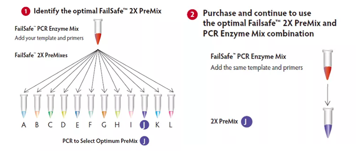 4. 操作簡單:只需將模板、引物和FailSafe? PCR Enzyme Mix添加到每個(gè)PreMix中;