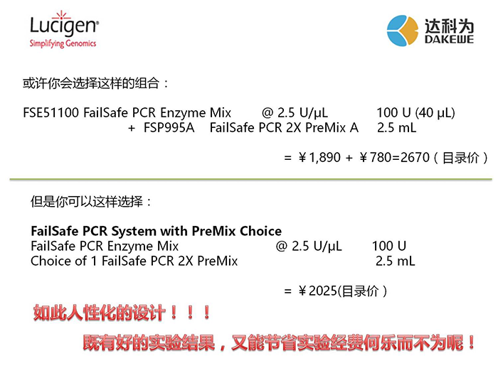 6. 提供人性化的定制組合:一旦確定了最佳的PreMix,既可以單獨(dú)購買PCR 2X PreMix和PCR Enzyme Mix ,也可以選擇購買含有以上兩種成分的套裝。
