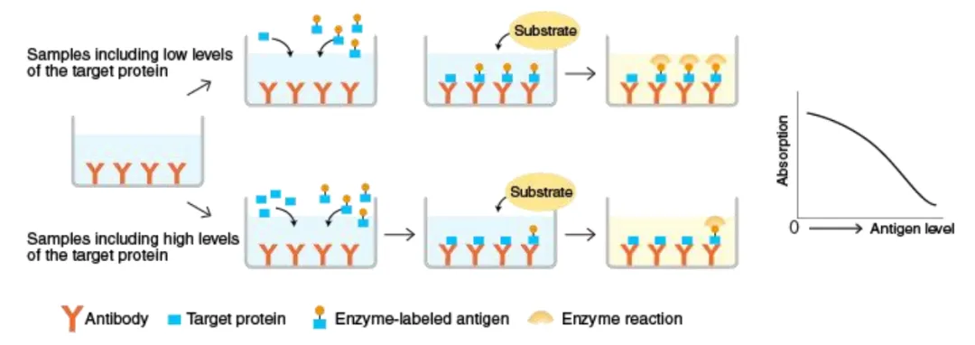1、樣本中分析物水平較低可以使用哪些方法改進(jìn)檢測(cè)?通過(guò)增加洗滌次數(shù)和兩次洗滌之間的浸泡時(shí)間降低背景。控制測(cè)定精確度。例如,在移液時(shí)要更加小心和一致,使用干凈的紙巾拍板,以避免污染。增加孵育時(shí)間。但這通常也會(huì)增加背景,因此檢測(cè)靈敏度不一定會(huì)增加。如果可以的話(huà),建議濃縮樣本。使用5-PL曲線(xiàn)擬合方法,更準(zhǔn)確地計(jì)算標(biāo)準(zhǔn)曲線(xiàn)下端的樣本濃度。在大多數(shù)情況下,樣本可能只含有非常低或無(wú)法檢測(cè)到的分析物水平。這時(shí)無(wú)論如何操作和測(cè)定,仍然無(wú)法檢測(cè)到準(zhǔn)確濃度。2、包板應(yīng)如何存放?如果包被完抗體的板不能立即使用,應(yīng)將其密封并在4°C儲(chǔ)存過(guò)夜。3、為什么使用同一克隆號(hào)的捕獲抗體和檢測(cè)抗體建立ELISA實(shí)驗(yàn)沒(méi)有成功?如果使用相同的克隆抗體進(jìn)行檢測(cè)和捕獲,則抗原表位可能已經(jīng)被其中一種抗體占據(jù)并抑制另一抗體結(jié)合。建議捕獲和檢測(cè)抗體選擇不同的克隆號(hào)。4、應(yīng)該使用哪種包被緩沖液?一般來(lái)說(shuō),建議使用PBS(pH 7.4)或碳酸鹽緩沖液(pH 9.5)。確切的包被緩沖液可能取決于要檢測(cè)的細(xì)胞因子。5、為什么細(xì)胞因子流式染色與ELISA測(cè)定之間沒(méi)有良好的相關(guān)性?流式細(xì)胞術(shù)檢測(cè)的胞內(nèi)細(xì)胞因子代表檢測(cè)時(shí)的陽(yáng)性細(xì)胞比例,ELISA代表細(xì)胞因子隨時(shí)間的積累量??赡苌倭康年?yáng)性細(xì)胞在一段時(shí)間之后會(huì)分泌大量的細(xì)胞因子于培養(yǎng)上清中,導(dǎo)致ELISA的結(jié)果與胞內(nèi)因子染色的結(jié)果不一致6、可以使用細(xì)胞培養(yǎng)板進(jìn)行ELISA實(shí)驗(yàn)嗎?不可以。細(xì)胞培養(yǎng)板設(shè)計(jì)用于達(dá)到細(xì)胞培養(yǎng)目的,通常不具有高蛋白結(jié)合能力。對(duì)于ELISA,建議使用具有高蛋白結(jié)合能力的板,例如 Nunc Maxisorp?酶標(biāo)板。7、血清等樣本可以重復(fù)使用嗎?不建議重復(fù)使用樣本。為了獲得準(zhǔn)確的結(jié)果,樣本應(yīng)分裝儲(chǔ)存,僅供一次性使用。如果重復(fù)使用樣本,需要進(jìn)行額外的驗(yàn)證實(shí)驗(yàn),以確保實(shí)驗(yàn)準(zhǔn)確性。8、在什么步驟中,可以暫停ELISA實(shí)驗(yàn)?可以冷凍板子以備后用嗎?最好遵循說(shuō)明書(shū)操作,沒(méi)有任何可以暫停實(shí)驗(yàn)的步驟。但是,如果一定需要暫停實(shí)驗(yàn),建議在封閉步驟(包被捕獲抗體后)??梢栽诳字屑尤?00 μL封閉緩沖液,并將板在4°C過(guò)夜(信號(hào)損失最小或沒(méi)有)或在-20°C冷凍幾天(可能會(huì)對(duì)信號(hào)產(chǎn)生一些影響)。不建議在第一步進(jìn)行(在4°C用捕獲抗體包被超過(guò)16-20小時(shí)),因?yàn)榭赡軙?huì)導(dǎo)致高背景。9、包被捕獲抗體可以超過(guò)過(guò)夜的時(shí)間嗎?通常來(lái)說(shuō),建議在4°C包被16-20小時(shí)。較長(zhǎng)的孵育時(shí)間可能會(huì)增加與板結(jié)合的捕獲抗體量,會(huì)增加背景。10、培養(yǎng)基中的酚紅會(huì)干擾ELISA測(cè)定嗎?不會(huì),培養(yǎng)基中酚紅的吸光度可以在計(jì)算時(shí),通過(guò)扣除空白孔中本底的吸光度而消去,因此不會(huì)干擾ELISA測(cè)定的讀數(shù)。11、對(duì)于一些ELISA試劑盒,為什么血清樣本需要稀釋?zhuān)?血清樣本稀釋可以盡量減少樣本和標(biāo)準(zhǔn)品之間的基質(zhì)差異,以獲得更加準(zhǔn)確的結(jié)果。12、如何提高ELISA檢測(cè)獲得更好的信號(hào)和靈敏度?增加孵育時(shí)間,但這也可能會(huì)增加檢測(cè)的背景,同時(shí)不改變靈敏度。在孵育步驟中搖動(dòng)板子。確保標(biāo)準(zhǔn)品在使用前完全溶解。在兩次洗滌之間增加浸泡時(shí)間,以進(jìn)一步降低背景。如果可以的話(huà),在450-570 nm處讀板以減去本底。通過(guò)控制移液誤差或使用更大體積的洗滌緩沖液洗滌來(lái)改善CV值。使用5-PL或4-PL曲線(xiàn)擬合方法,而不是線(xiàn)性曲線(xiàn)擬合。