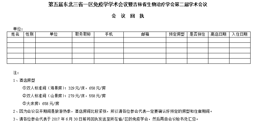 、第五屆東北三省一區(qū)免疫學(xué)學(xué)術(shù)會(huì)議暨吉林省生物治療學(xué)會(huì)第二屆學(xué)術(shù)會(huì)議征文通知、會(huì)議費(fèi)用、交通等詳見附件。